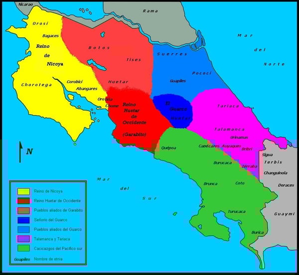 (A general map of the autonomous social groups in what would later become Costa Rica | PC: Commons)