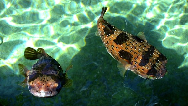 A balloonfish contracting after puffing up. During this time, balloonfish are very vulnerable to predators, and hide carefully | PC: Commons